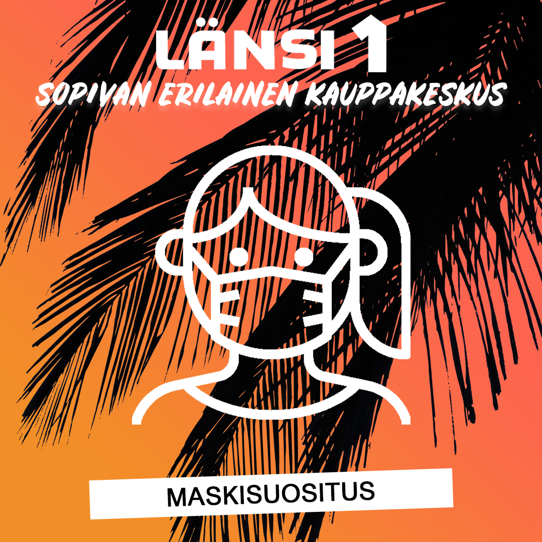 Kauppakeskus Länsi 1 suosittelee viranomaisten ohjeiden mukaisesti kasvomaskien käyttöä.